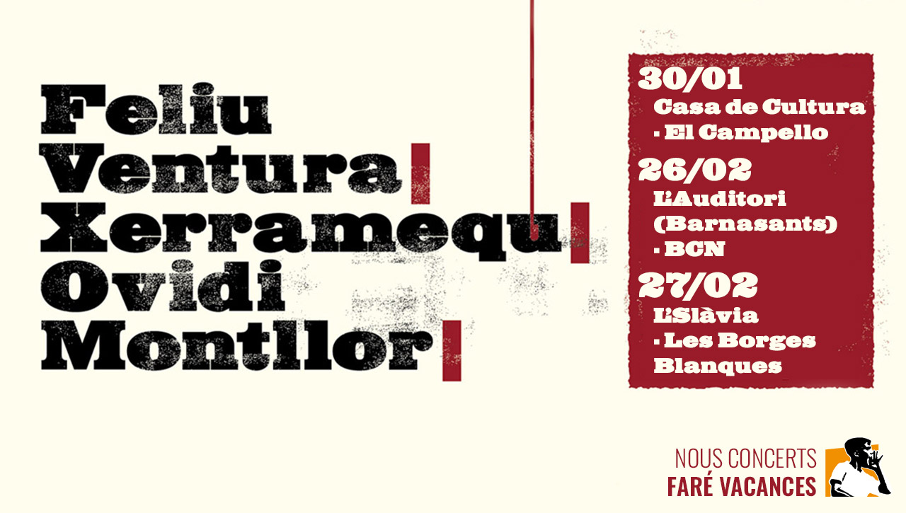 L’espectacle d’homenatge a Ovidi Montllor de Feliu Ventura amb el Xerramequ i els Aborígens, ‘Faré Vacances’, continua de gira!